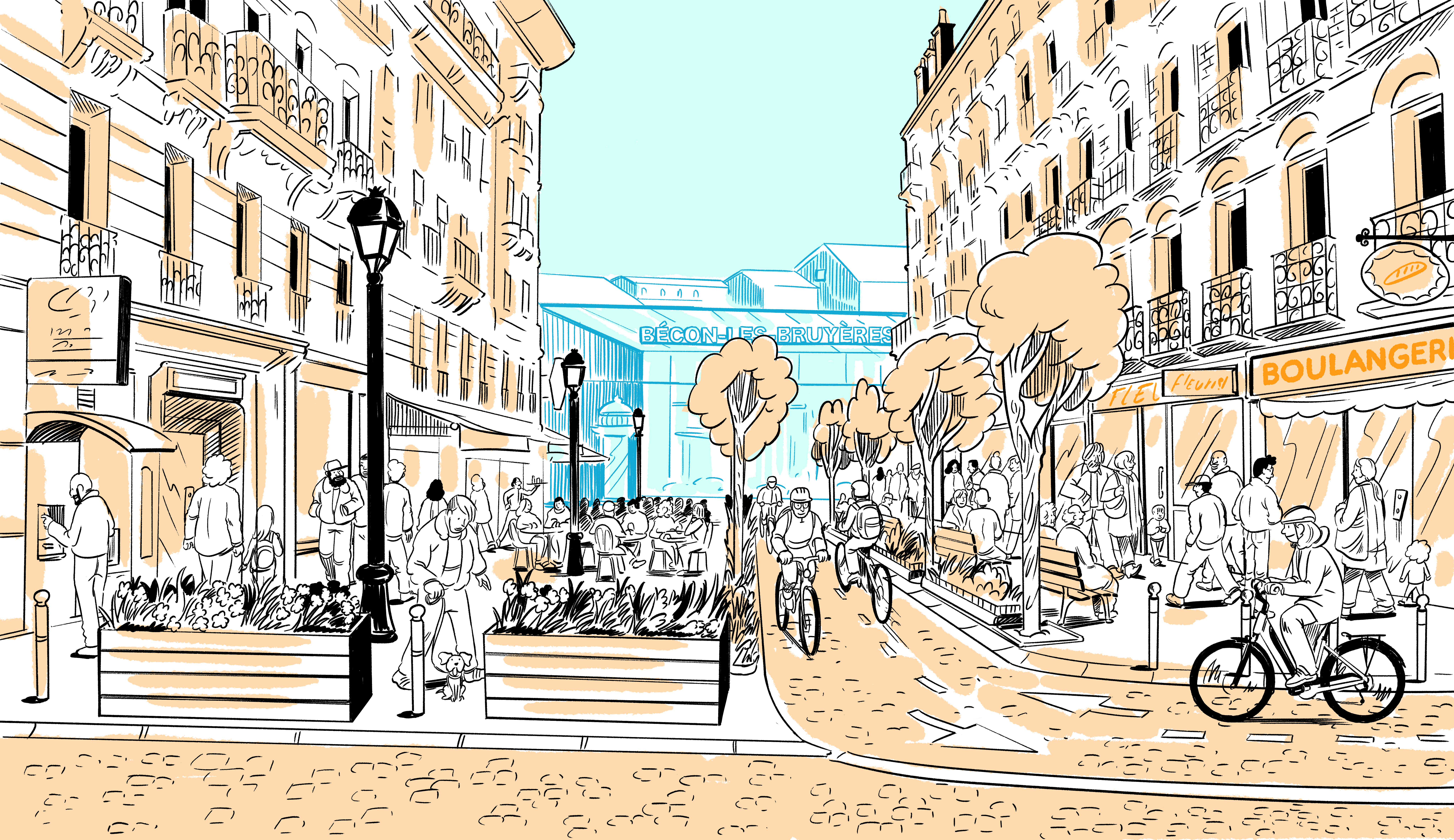 Nous souhaitons favoriser l’installation de terrasses pour se retrouver, pour boire un café, manger, discuter. Plus d’arbres, plus d’ombre, pour faire du village de Bécon un lieu vivant et convivial tout au long de l’année