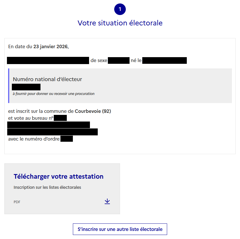 Vous pourrez également télécharger votre attestation électorale.